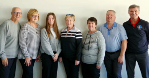 GOLF-ESTRIE: Diane Barabé (au centre) est présidente du c.a. de Golf-Estrie pour la saison 2023. Elle pose avec ses acolytes Gilles Péloquin, Claire Beaubien, Mathilde Denicourt, Sylvie Gagnon, Réal Chartier et Pierre Lallier.