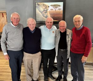 400 ANS DE GOLF: Ted Fletcher, Dave Ross, Duke Doucet, André Maltais et Russ Campbell, cinq amis de longue date, ont célébré Noël à l’avance dans un resto du West Island. Ensemble, ils totalisent plus de 400 ans de golf!