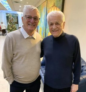 DEUX CHAMPIONS: Pete Cianflone, ex-lanceur étoile des Royaux de Drummondville, a profité du concert de Noël de la Résidence Le Maronnier, à Laval, pour renouer avec Gilles Robichaud, ex-voltigeur des Alouettes de Sherbrooke, des Castors d’Acton Vale et des Braves de Plessisville. Ils ont évidemment parlé de baseball.