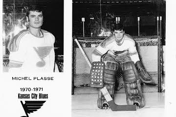 Michel Plasse était tout un personnage. Il a joué pour 6 équipes de la LNH. Il pose ici dans le chandail des Blues de Kansas City.