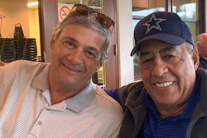 J’étais content de revoir John Mentis au club de golf Granby Miner. Il pose ici avec Daniel (Pee-Wee) Laroche, un de ses plus fervents admirateurs. (Photo Diane Barabé)