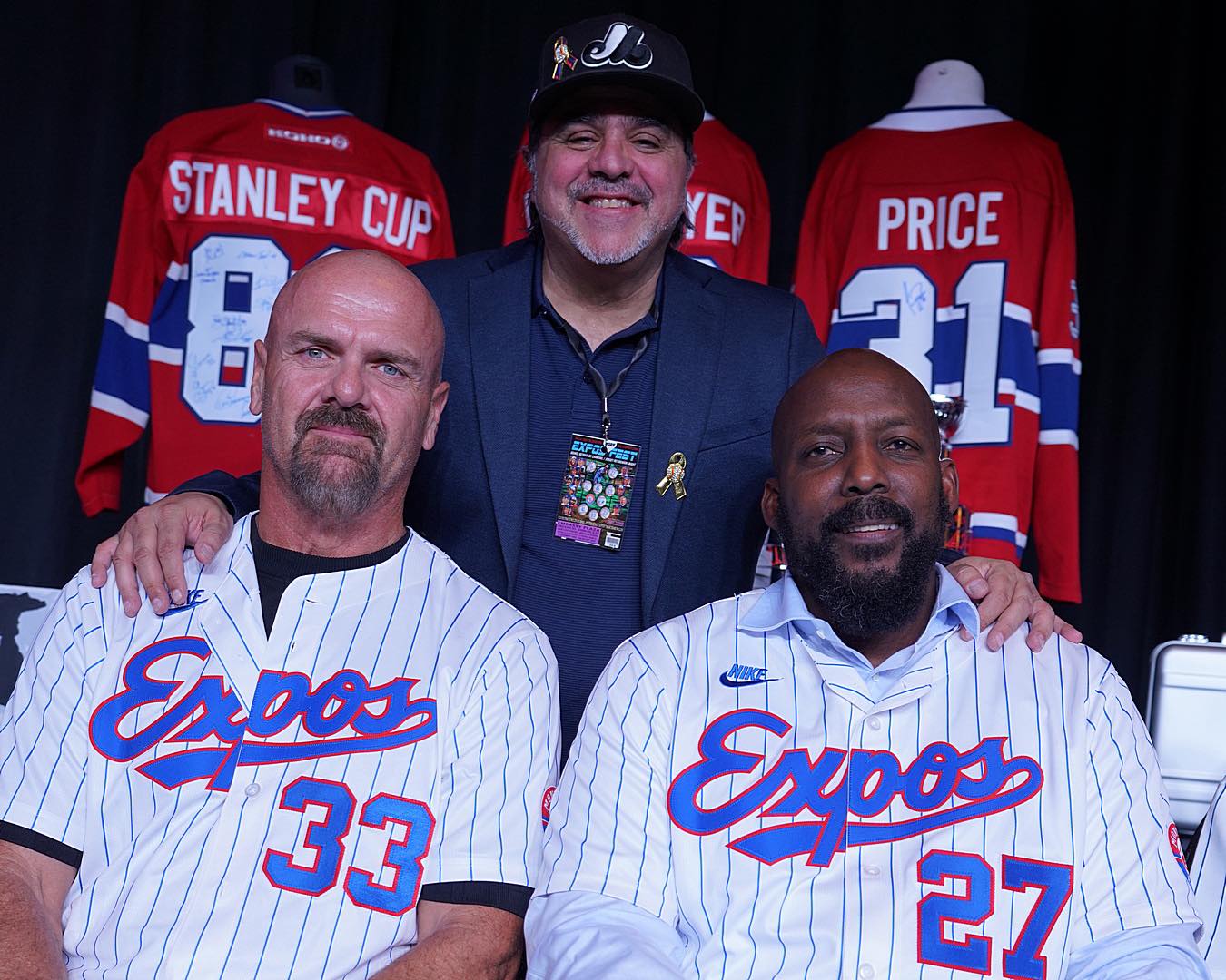Perry Gee a encore le logo des Expos tatoué sur le coeur. Il pose ici avec Larry Walker et Vladimir Guerrero, deux de ses favoris.