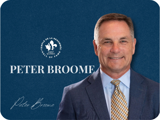 - JEAN-PIERRE BEAULIEU s’est rendu en Floride pour rencontrer PETER BROOME et lui remettre sa plaque de membre du Temple de la renommée de GOLF-QUÉBEC. Broome a travaillé longtemps pour la compagnie ACUSHNET.