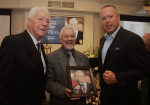 Gerry Bolen et Steve Germain ont profité des funérailles de l’ancien arbitre Guy Jutras pour discuter de boxe avec Ian Clyde. (Photo P.Y. Pelletier)