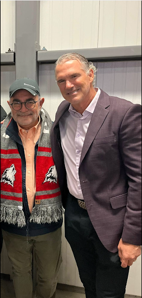 Pierre Turgeon a été nommé ambassadeur du 100e anniversaire de la ville de Rouyn-Noranda. Me Louis-Charles Bélanger, fan fini des Huskies, en a profité pour jaser de hockey avec le Magicien de Rouyn.