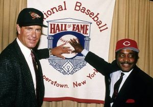 Jim Palmer, huit fois vainqueur de 20 parties chez les Orioles de Baltimore, et Little Joe Morgan, joueur étoile de la Big Red Machine.