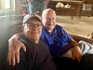 Dernière photo de Glenn Hall en compagnie de Scotty Bowman, son ancien coach à St-Louis. C’était en juin dernier en Alberta. (Collection Dave Stubbs)