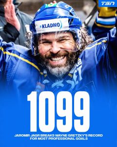 1099 BUTS: En prolongeant sa carrière «ad vitam aeternam», JAROMIR JAGR a fini par dépasser Wayne Gretzky avec 1099 buts chez les pros. Gretzky a pris sa retraite à 38 ans alors que Jagr joue encore à 51 ans.