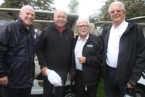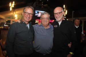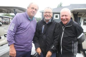Max Oxford et Duke Doucet ont tenu à féliciter Dave Ross (au centre) pour son élection au Temple de la renommée de Golf-Québec. Les 3 hommes sont des amis de longue date. (Photo P.Y. Pelletier)