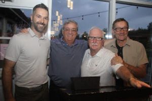 Marc-Étienne Bussières, d.g. du club LongChamp, avec Bibi, Gilles Lacroix et André Dubuc, ancien joueur des Vics de Granby. (Photo P.Y. Pelletier)